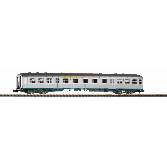 Druckvariante des 1./2. Klasse Personenwagens der DB in Epoche IV. Als Silberling wird unter Eisenbahnfans eine Familie von Nahverkehrswagen der Deutschen Bundesbahn bezeichnet. Den Namen „Silberlinge“ verdanken die Fahrzeuge ihrem Wagenkasten aus Edelstahl. Über 5000 Exemplare wurden zwischen 1961 und 1980 gebaut und waren bis Anfang 2020 bei DB Regio anzutreffen. Nach ihrem Nebengattungszeichen werden die Wagen auch gerne als n-Wagen bezeichnet. Mit den n-Wagen hat PIKO einen Fahrzeugtyp ins Sortiment aufgenommen, der praktisch auf keiner Modellbahn fehlen darf, deren Thema bei der Bundesbahn oder der DB AG angesiedelt ist. Wie beim Vorbild unterscheiden sich auch die Modelle abhängig von der Wagenklasse in Fensteraufteilung und Inneneinrichtung, die Stichmaße wurden vorbildgerecht in die Baugröße N umgesetzt. Formenbau auf höchstem Niveau sorgt für äußerst plastisch wirkende Drehgestelle und die von PIKO gewohnte hochwertige Lackierung und Bedruckung verleiht den Fahrzeugen ein hervorragendes Finish. Die Fahrzeuge sind für das unkomplizierte Nachrüsten einer Innenbeleuchtung vorbereitet.
