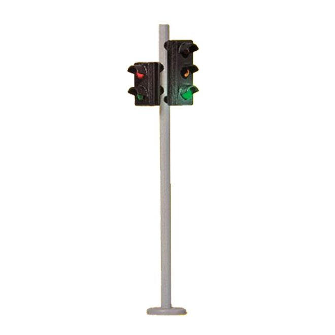 Dieses Set besteht aus zwei Ampeln mit je einer roten, gelben und grünen LED für den Straßenverkehr