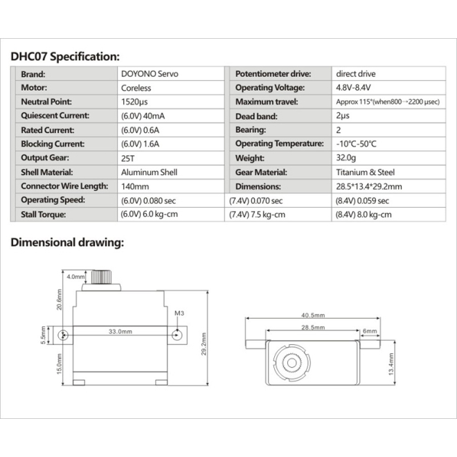 Doyono DHC102 Servo HV Low Profile CNC Alugehäuse 15.0kg/0.054sec @8.4V