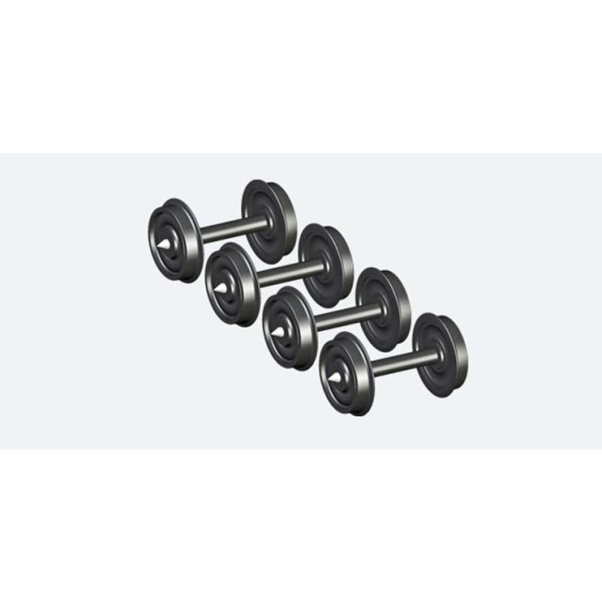 Scheibenradsatz AC für Spitzenlagerung, Personenzugwagen, Durchmesser 10,8mm, Achslänge 23,1mm. 4 Stück Packung