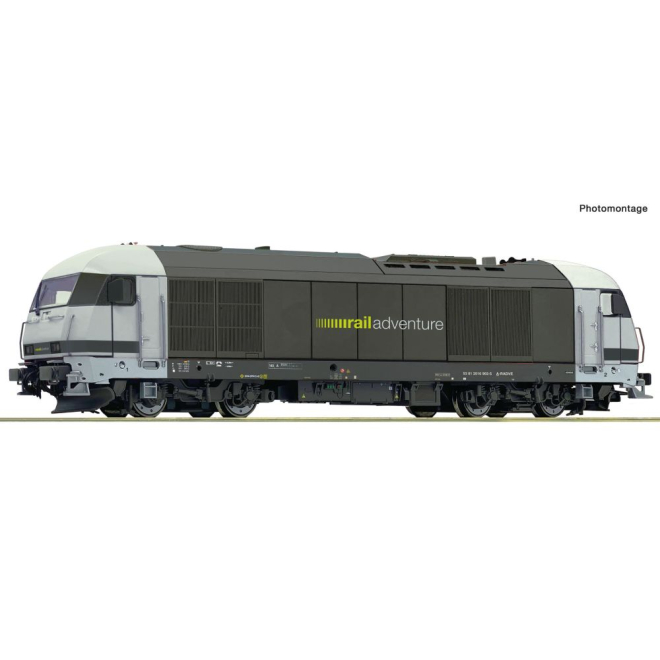 Diesellokomotive 2016 902 der Railadventure. ■ Beigelegte Außenspiegel für ein- und ausgeklappte Stellung ■ Extra angesetzte Griffstangen, Scheibenwischer und UIC-Dosen ■ Farblich abgesetzte Bremsscheiben ■ Im Digitalbetrieb mit schaltbarem Fernlicht und einzeln schaltbarem Spitzen- oder Schlusslicht Die RailAdventure GmbH, mit Sitz in München, ist Marktführer von Probe- und Überführungsfahrten von Schienenfahrzeugen im gesamten europäischen Raum. Das Unternehmen besitzt Lokomotiven, Kupplungsadapter- und Bremswagen. Neben diversen Elektrolokomotiven, hat RailAdventure auch eine dieselelektrische Lokomotive vom Typ Siemens EuroRunner, für nichtelektrifizierte Strecken mit geringen Achslasten, im Einsatz. Ende 2022 wurde die Lokomotive von der Steiermarkbahn gekauft und danach mit dem Design von RailAdventure versehen.