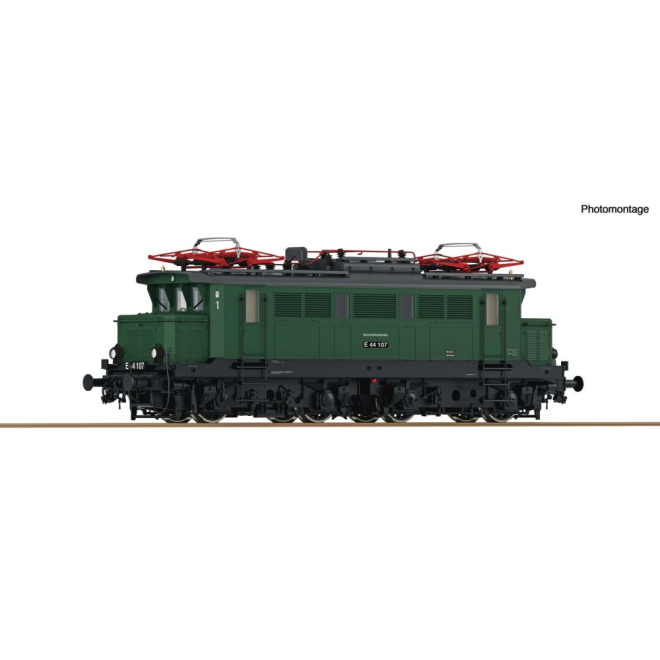 Elektrolokomotive E 44 107 der Deutschen Bundesbahn. ■ Große Lampen der Reichsbahn-Einheitsbauart ■ Stromabnehmer Typ SBS 10 ■ Extra angesetzte Scheibenwischer ■ Freier Führerstands-Durchblick ■ Radsätze mit niedrigen Spurkränzen ■ Im Digitalbetrieb mit schaltbarer Führerstands- und Maschinenraumbeleuchtung Von der Elektrolokomotive der Baureihe E 44 (ab 1968 bei der DB Baureihe 144) wurden von 1932 bis 1954 fast 200 Lokomotiven in Dienst gestellt. Die Leistung der vierachsigen Drehgestell-Lokomotiven betrug rund 2.200 kW, dabei lag die Höchstgeschwindigkeit bei 90 km/h. Die Loks bewährten sich dabei sowohl vor Personenzügen als auch vor Güterzügen.
