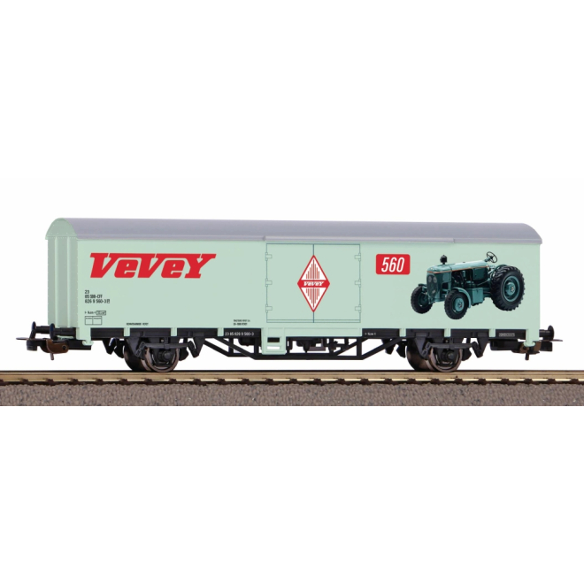 Neuheit 2023: Drückvariante des gedeckten Güterwagens mit attraktiver Werbung für Vevey in der Ausführung der SBB in Epoche III.